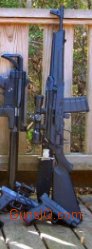 Bottom photo: Saiga with tactical upper and lower quad rails installed.